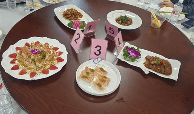 随后,评委们根据菜品的口味与质感、工艺与火候、色泽与形态、创意与特色、营养与卫生为选手们打分,成功推选出优秀参赛者,他们将在之后的北京高校后勤烹饪技能大赛中与其他高校厨师一决高下,代表北外争夺荣誉的桂冠。
