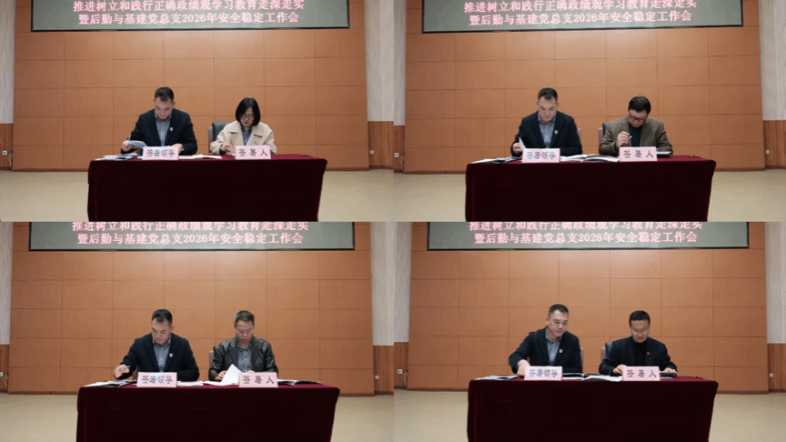 下午,郑广天围绕学校安全隐患原因分析、安全体系构建、风险防控、科技赋能、危机应对五大模块,开展安全专题辅导。后勤与基建党总支书记、处长陈军平与班子其他成员,逐级签订《后勤与基建处2026年消防安全责任书》《后勤与基建处维护安全稳定任务书 校园网格化安全管理责任书》《后勤与基建党总支干部廉洁自律承诺书》,以书面形式压实安全责任与廉洁责任,确保责任落实到人、工作落地到位。