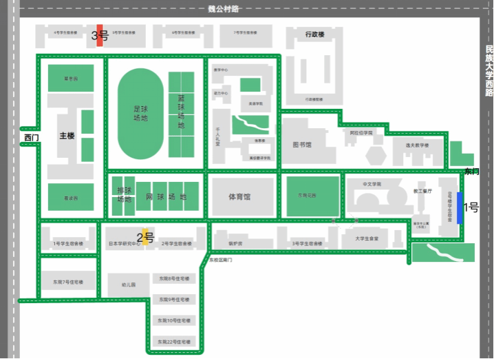 据统计2025届毕业生集中在1、4、3、6、8号宿舍楼(1号楼130间、4号楼248间、3号楼123间、8号楼113间)。根据毕业生集中楼宇及场地条件暂定三处托运服务点为: