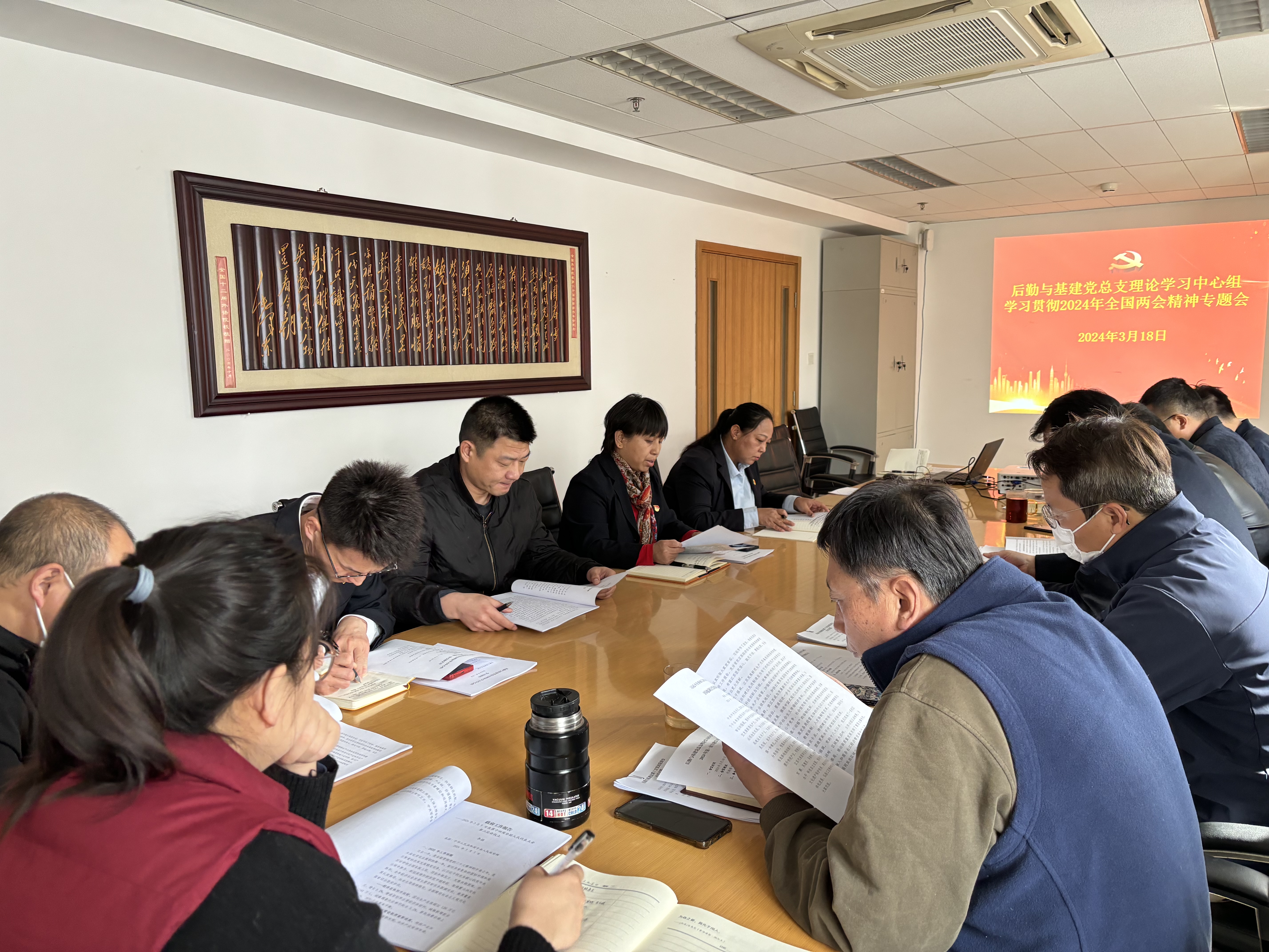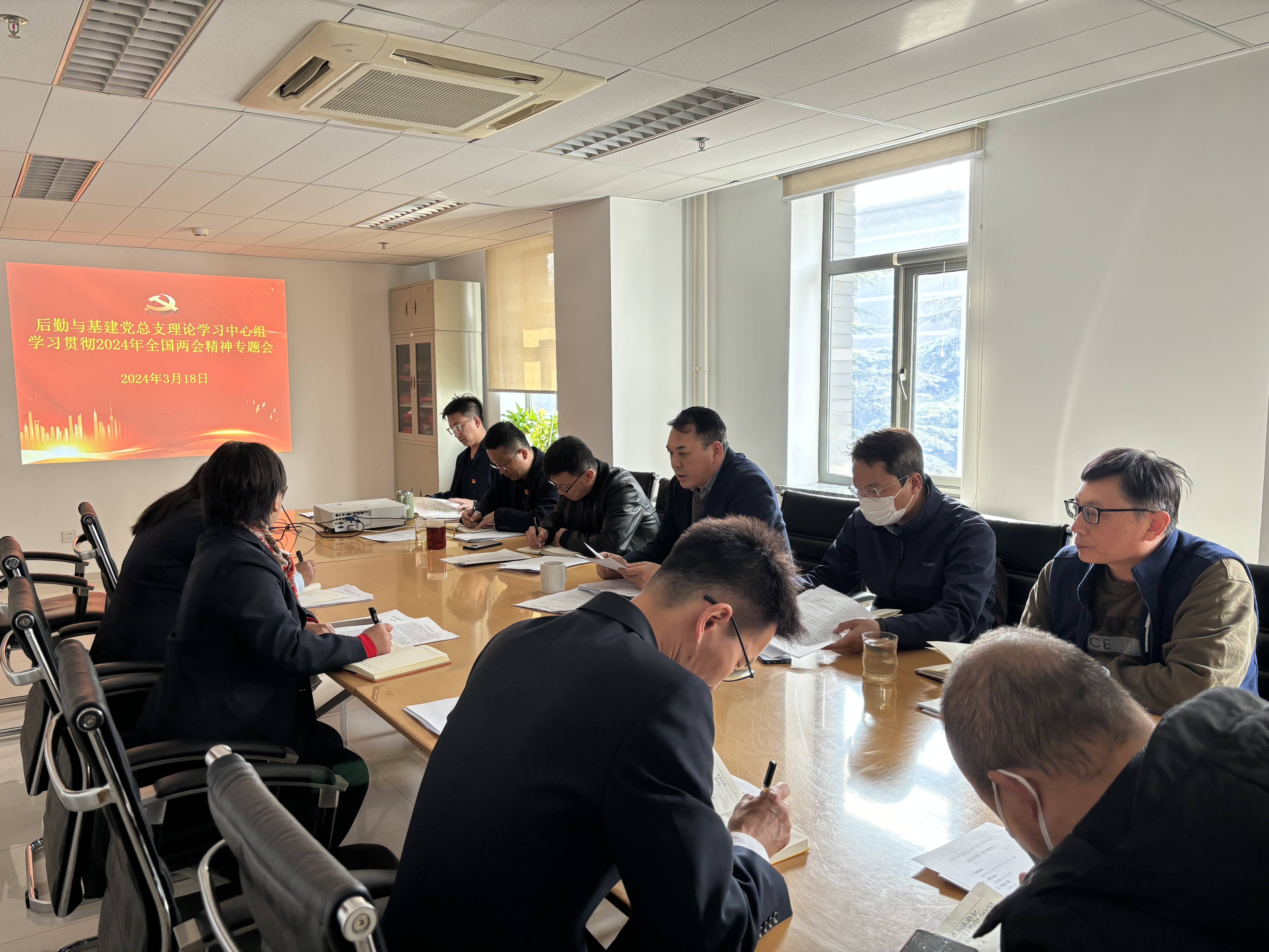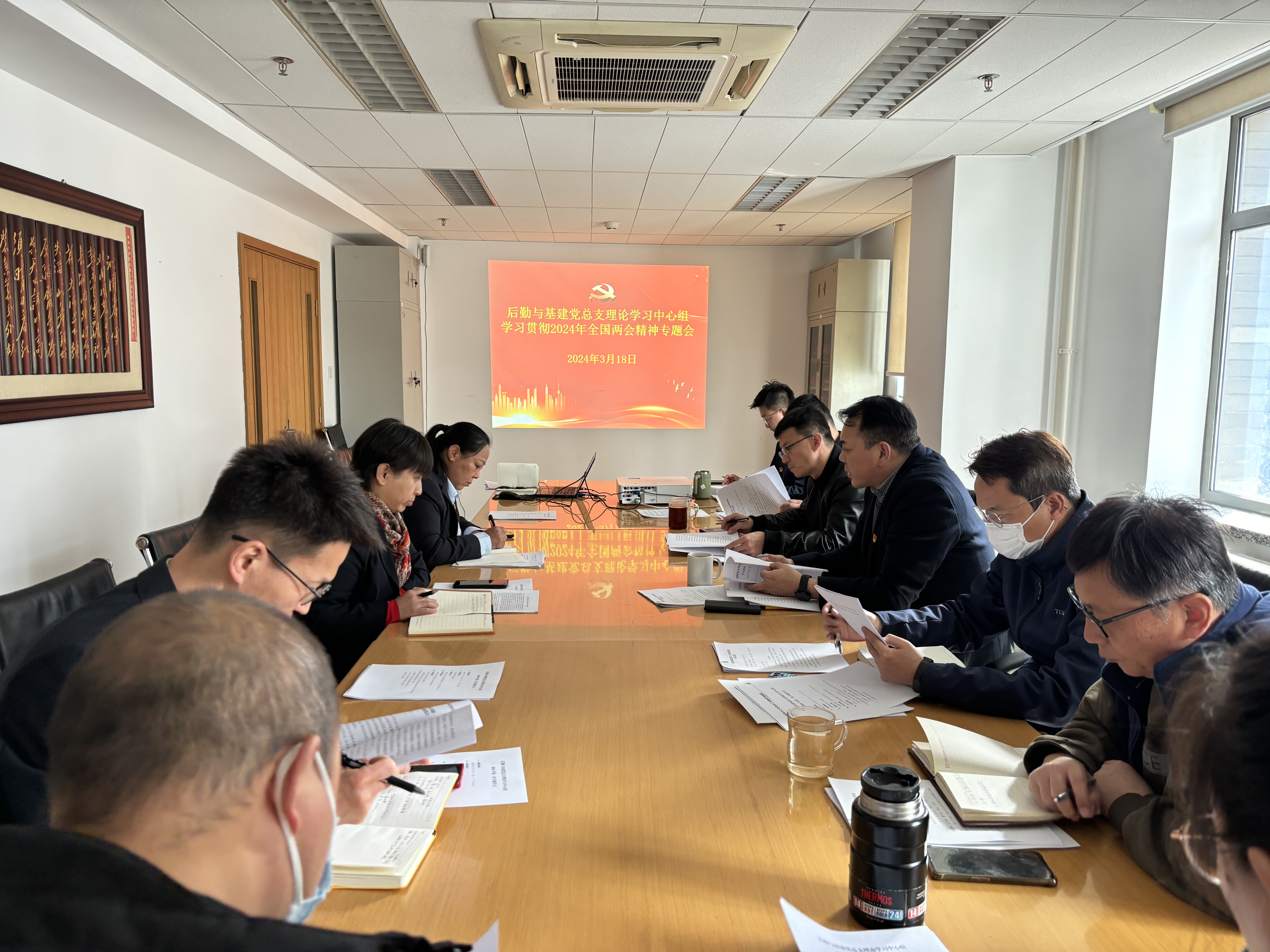 3月18日,后勤与基建党总支理论学习中心组召开学习贯彻2024年全国两会精神专题会 ,会议由党总支书记、处长陈军平主持,党总支委员、各中心党支部书记参加会议。