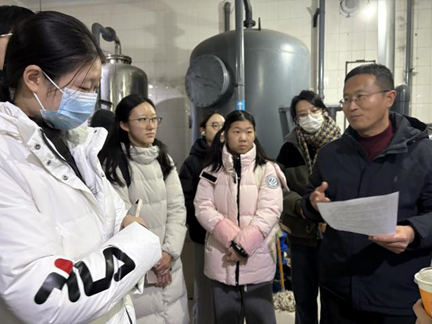 最后一站的锅炉房被誉为校园“绿色暖核”,覆盖全校52万平方米建筑的供暖与热水供应体系让同学们倍感震撼。在了解到9台总功率46.2兆瓦的高效锅炉配备低氮燃烧、烟气余热回收等环保设施,且“分时分区”智能调控系统能实现节能与保暖双赢后,同学们踊跃提问安全保障、节能降耗等问题,党员干部逐一细致解答。这场互动让同学们全面了解了供暖系统的环保原理,对校园绿色发展实践有了更直观的认识。