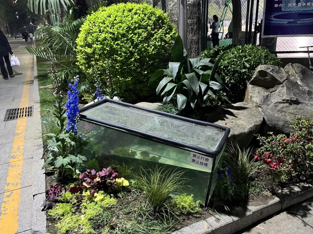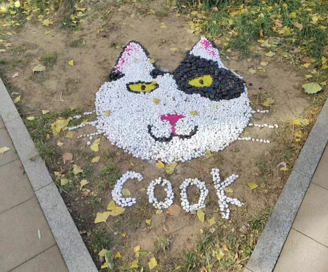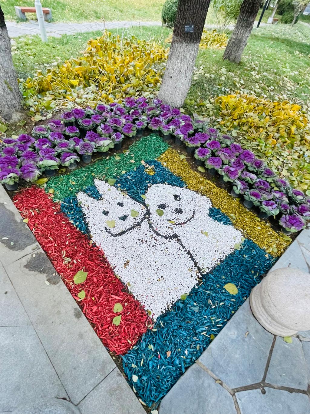 环境育人感染人。校园景色怡人,绿化师傅尽心。一改传统做法,绿化师傅们大胆创新和想象,用彩色有机覆盖物装扮艺术草坪,如主楼后的大笑脸、图书馆前的“腊肠猫”、英语学院前的小猫cook;用盆景绿植妆点校园新气象,如小碧池边的棕榈亚热风景,操场旁的“神秘倾斜的亚热带鱼缸”、主楼后面“一缸盛不下的北外春天”。看到师生们眼中的惊喜,对绿色美景的欣赏与驻足,绿化师傅们别提多开心和满足了。
