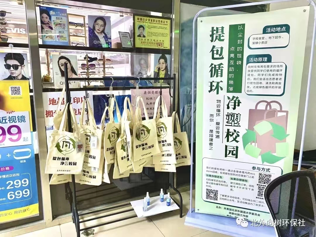 作为学校社团的指导教师,我鼓励向树环保社团开展多种形式的活动,如提包循环、快递箱回收、草地垃圾捡拾、旧衣物回收等。通过社团自发组织,学生们自我约束,使大学生逐渐养成绿色环保意识,自觉践行参与共建绿色、美丽、和谐的北外校园。
